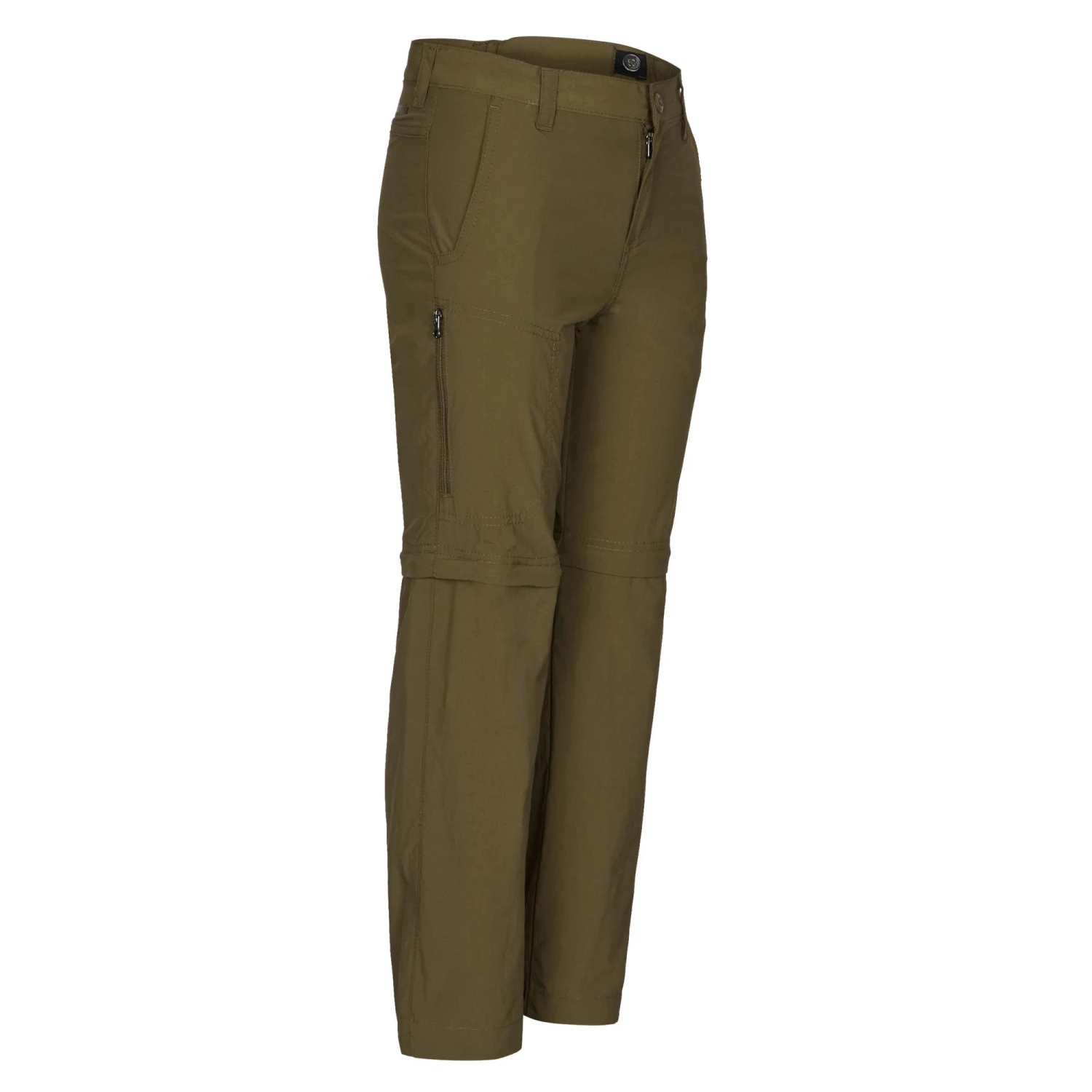 Die Hose ist angenehm leicht und dünn, dank ihres Nylon-Materials mit dezenter Ripstop-Struktur kann sie aber dennoch einiges ab. Das Material leitet entstehende Feuchtigkeit schnell nach außen hin ab und trocknet im Handumdrehen. So haben deine Kinder auch nach schweißtreibenden Aktivitäten schnell wieder ein angenehm trockenes Gefühl auf der Haut. Die Taschen sind mit einem feuchtigkeitsleitenden Netzfutter ausgestattet, das die Belüftung optimiert. Wird deinen Kindern dennoch mal zu warm, können sie einfach die Beine abzippen und schon kann die Hose in eine luftige Shorts verwandelt werden.