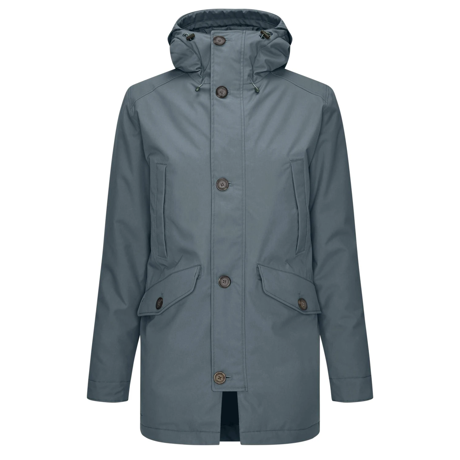 Dank des glatten, weichen Innenmaterials gleitet die Jacke auch problemlos über raue Fleece– oder Wollpullover. In den äußerst geräumigen Einschubtaschen kannst du deine Mütze oder deine Handschuhe zwischenlagern. Die verstellbare Kapuze ist mit einem großen Schirm versehen, der dein Gesicht vor peitschendem Regen schützt. Wenn es nur leicht regnet oder dir nur ein kalter Wind um die Ohren weht, kannst du den Schirm aber auch einfach umklappen und per Druckknopf fixieren.