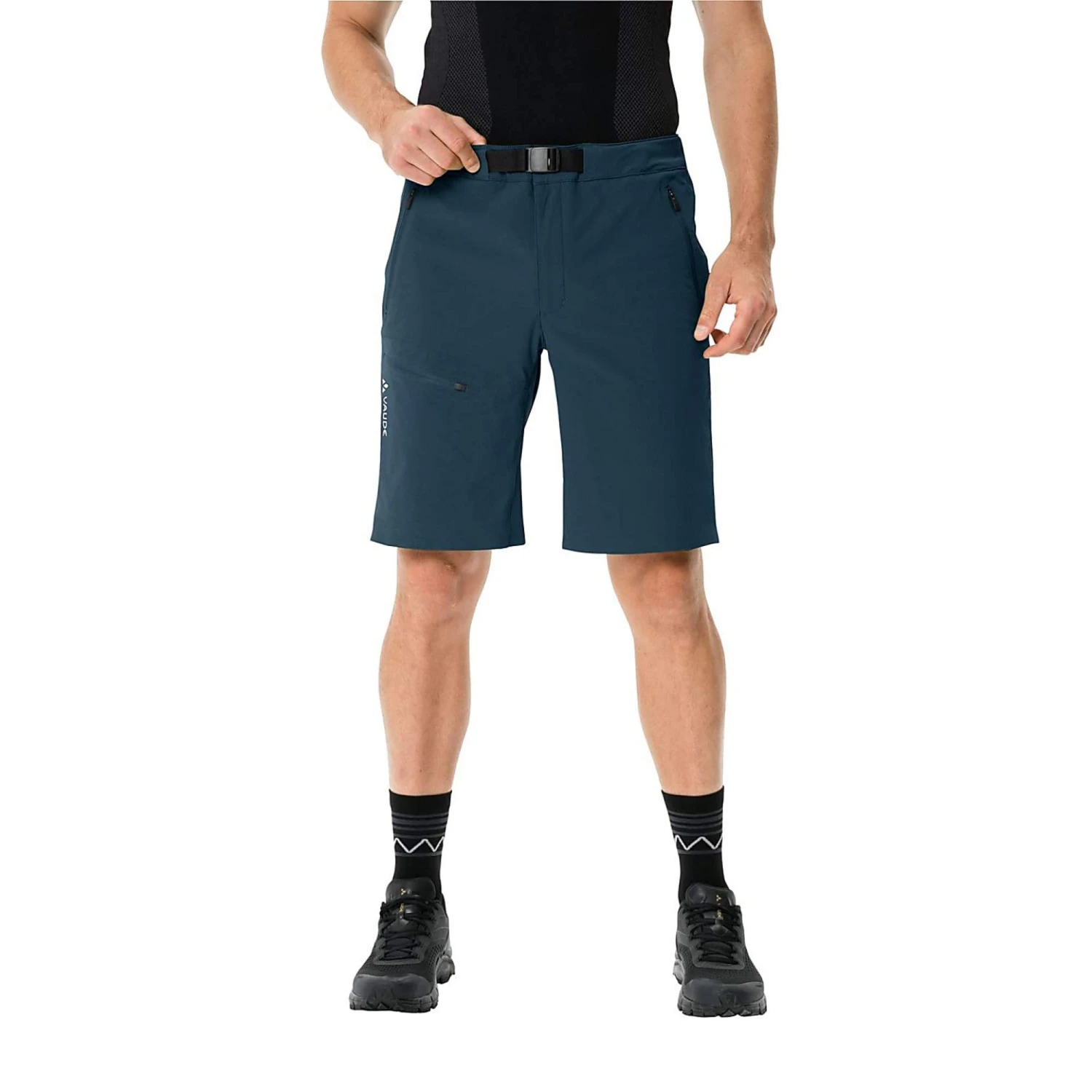 Die Shorts besteht aus einem funktionalen Materialgemisch aus Polyamid und Elasthan. Durch den hohen Polyamid-Anteil ist die Hose sehr robust. So wird das Material nicht in Mitleidenschaft gezogen, wenn du dich mal durch dichtes Gebüsch schlagen musst oder an schroffen Felsen vorbeischrammst. Zudem transportiert das Material entstehende Körperfeuchtigkeit im Handumdrehen nach außen hin ab und trocknet dann schnell wieder. Das sorgt auch auf herausfordernden Etappen für ein angenehm trockenes Gefühl an den Beinen. Durch das Elasthan im Gewebe ist die Shorts schön dehnbar – zusammen mit dem Zwickel im Schritt verleiht dir die Shorts so immer volle Bewegungsfreiheit.